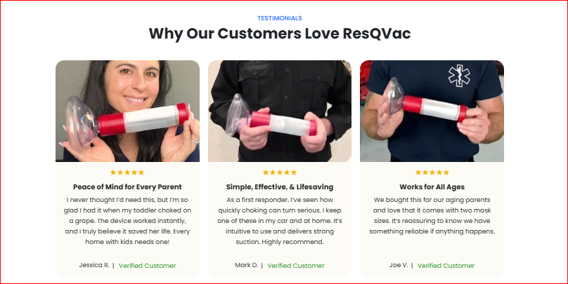 Whether it’s a toddler choking on grapes, a senior citizen struggling with medication, or a diner facing a sudden emergency, ResQVac has proven its lifesaving value.