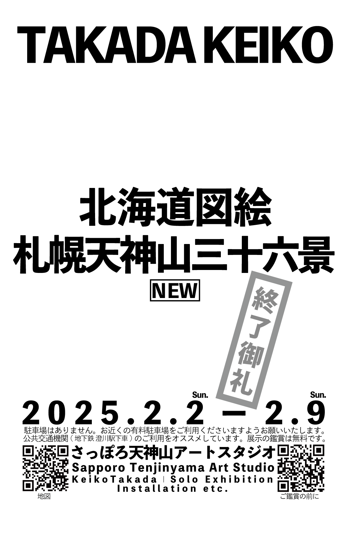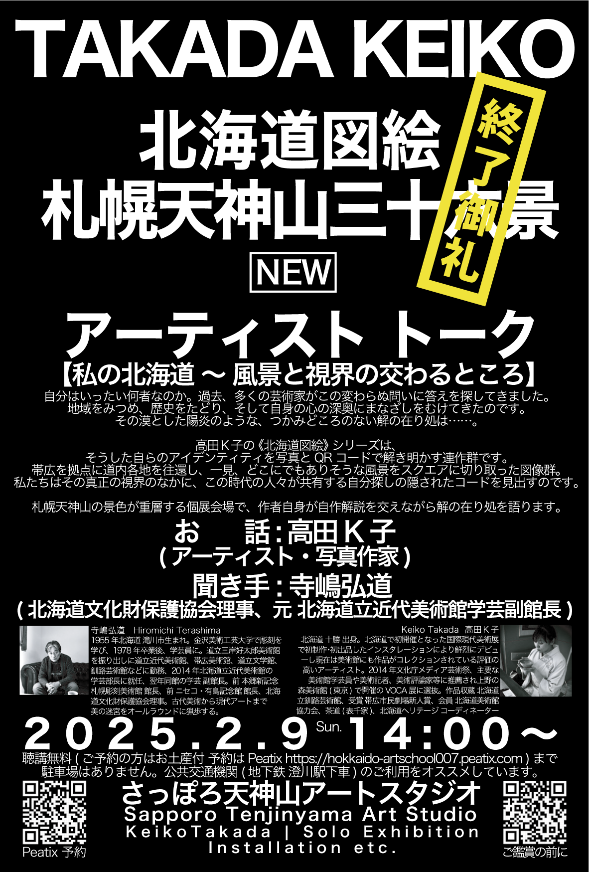 2025年2月9日(日)の寺嶋弘道さん( 北海道文化財保護協会理事 .元 北海道立近代美術館 学芸 副館長 .前 本郷新記念札幌彫刻美術館長.前 有島記念館長)とのアーティスト トークは終了いたしました。たくさんのご来場ありがとうございました